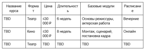 Модули и практика: Оба направления включают учебные проекты, но театр чаще делает упор на сценические этюды, а кино — на короткие видеоработы. Конкретный формат зависит от программы (TBD). Что должно быть в базовой программе для стартаМинимальный набор модулей, с которого имеет смысл начинать: Чек-лист базовых модулей: