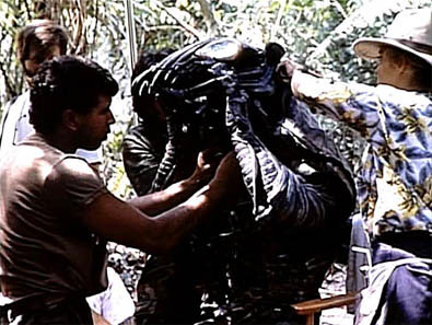 Еще до премьеры «Чужих» было ясно, что ленту ждет большое будущее — интерес зрителей к постановке Кэмерона не ослабевал в течение всего съемочного периода. Поэтому студия 20th Century Fox не сильно рисковала, запуская в производство новый проект сходной тематики. Сама причина рождения будущего блокбастера достойна того, чтобы стать сценарной фабулой какой-нибудь едкой сатиры на американское кинопроизводство. Уже находящийся в зените славы Сильвестр Сталлоне по неизвестному стечению обстоятельств был излюбленной мишенью голливудских острословов, не упускающих ни единого шанса поиздеваться над звездой. Попал под обстрел критики и его новый фильм сериала «Рокки», в котором боксер вышел на ринг с русским тяжеловесом Иваном Драго. Драматургическая составляющая картины была слаба, и язвительные критики поспешили заявить, что единственным противником, с которым еще не сражался Рокки, остался инопланетянин ET из фильма Спилберга. Непостижимым образом эта шутка задела воображение двух начинающих сценаристов — братьев Джина и Джона Томасов, решивших превратить ее в захватывающую дух историю схватки человека и инопланетянина. Уже в конце 1985 года первый вариант рукописи был готов и предложен Fox под названием «Первобытное зло» (Primeevil). Студии сценарий понравился, и в скором времени проект перешел в стадию pre-production. Спецэффекты разрабатывались штатными сотрудниками Fox, тотчас же столкнувшимися с проблемами при моделировании инопланетянина. Согласно первоначальной версии сценария Томасов, чужак изображался бесформенным организмом, способным управлять мыслями и действиями других живых существ. Технология, необходимая для адекватного изображения пришельца на экране, была идентична программе, воспроизводившей робота Т-1000 в легендарном «Терминаторе 2». Возглавить проект было доверено Джону МакТирнану — молодому режиссеру, обратившему на себя внимание малобюджетным ужастиком «Кочевники» (Nomads). «Инопланетный охотник» (Alien Hunter) — так теперь именовалась картина — был первой крупной студийной постановкой МакТирнана, и для осуществления внутреннего контроля на площадке продюсер Джоэл Сильвер «отрядил» своего приятеля Шейна Блэка — сценариста «Смертельного оружия». Блэку было всего 25 лет, поэтому он с радостью согласился сыграть одного из коммандос — шансы на подобные авантюры выпадают далеко не каждому… К этому времени проект обрел звезду. Арнольд Шварценеггер согласился исполнить главную роль — командира спецназовцев, майора Алана Шеффера по прозвищу Голландец (Датч). Остальных персонажей распределили между Карлом Уэзерсом, работавшим в приснопамятном «Рокки», Джесси Вентурой и Биллом Дьюком, снимавшимся с Шварценеггером в «Коммандос». Сонни Лэдем, порнозвезда 70-х, начавший «официальную» карьеру, был взят на картину с одним условием: страховая компания настояла на телохранителе, что должен был круглосуточно находиться возле актера. Однако охранял страж вовсе не Лэдема, а остальную съемочную группу, ибо Сонни слыл большим любителем подраться. На роль заглавного существа был утвержден никому не известный каратист Жан-Клод Ван Дамм, подрабатывавший каскадером и имевший в творческом активе лишь роль гея в комедии «Монако навсегда». ![]() Ван Дамма облачают в костюм Хищника. Шамаланоподобный индус, помогающий прикрепить шлем 